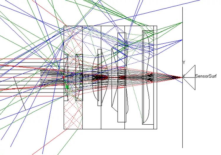 在CODE V方面,您首先打开包含所需模型的序列文件,例如这个手机摄像头。初始模型制作完成后,CODE V可以生成供LightTools读取的.osf文件。